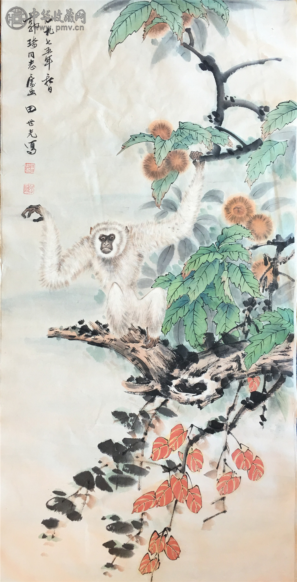 田世光 《白猿嬉戏图》100x50cm