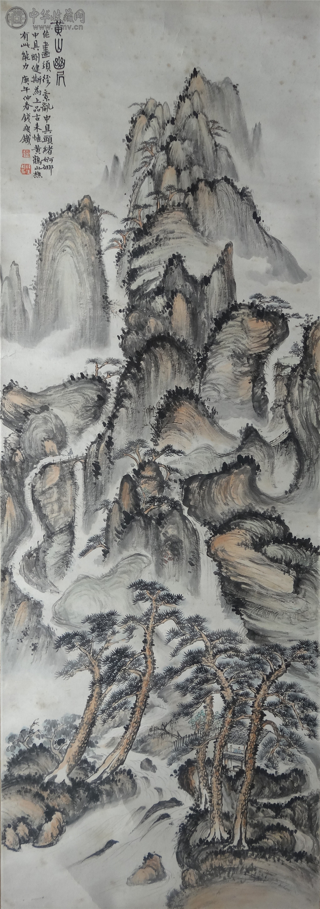 钱瘦铁 《黄山幽岩图》 46X131cm