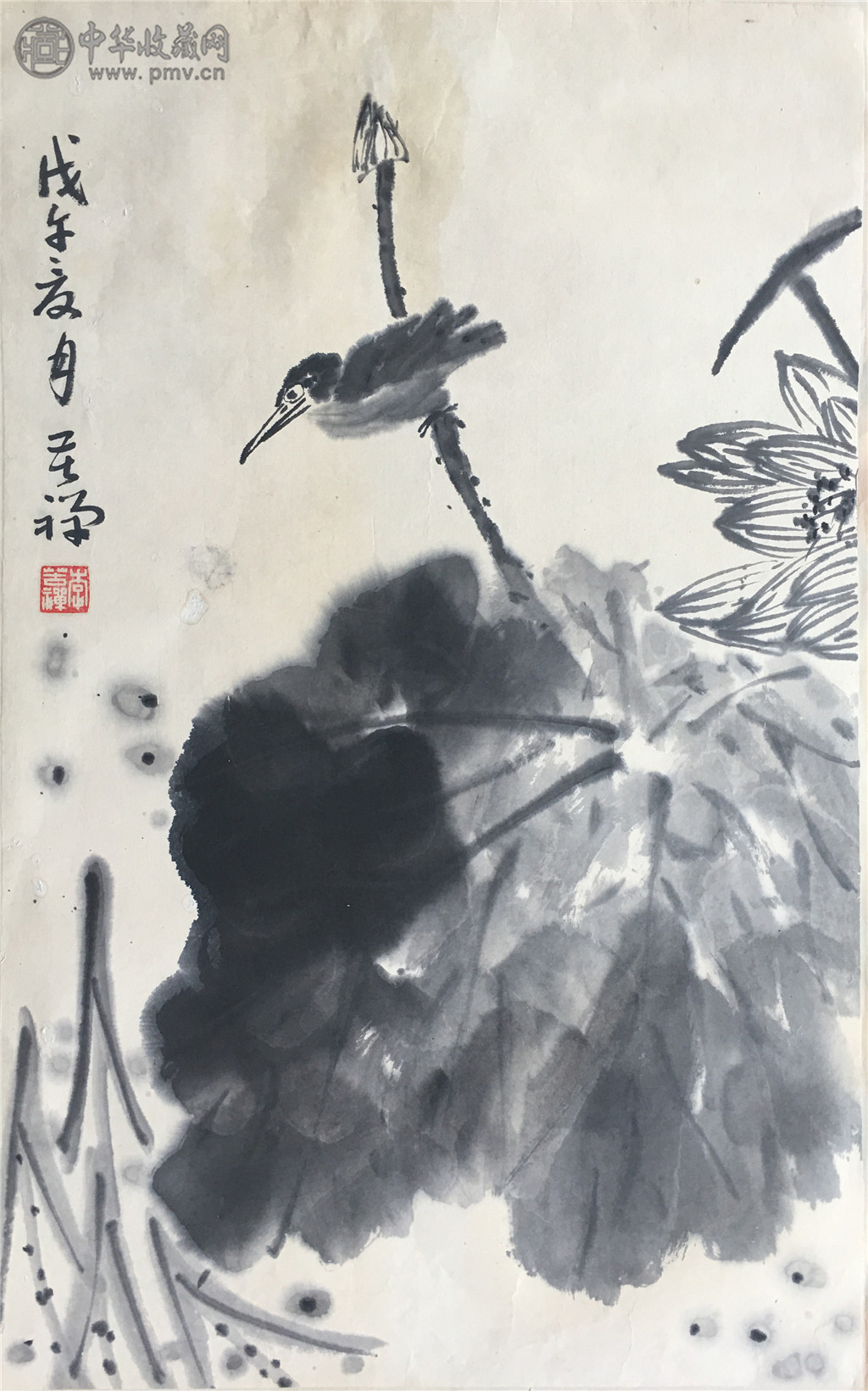 李苦禅《荷花水鸟图》68x42cm