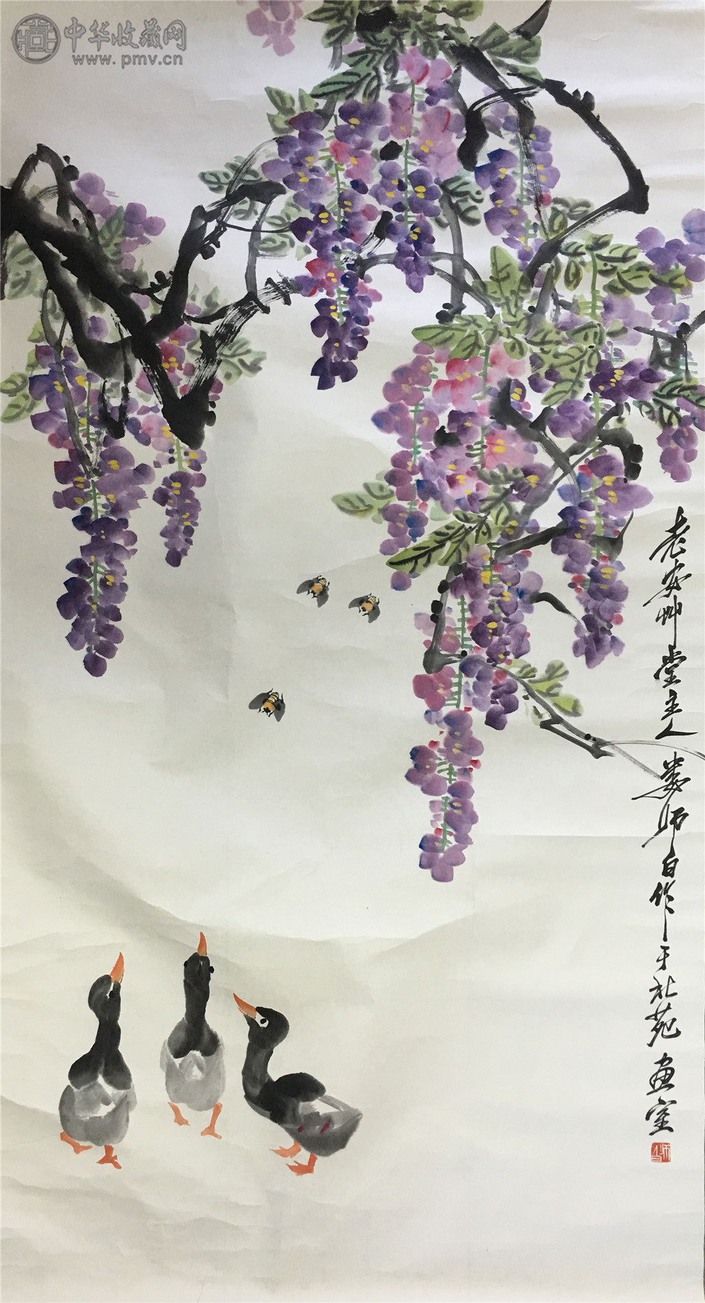 娄师白 《紫藤小鸭图》 175x96cm