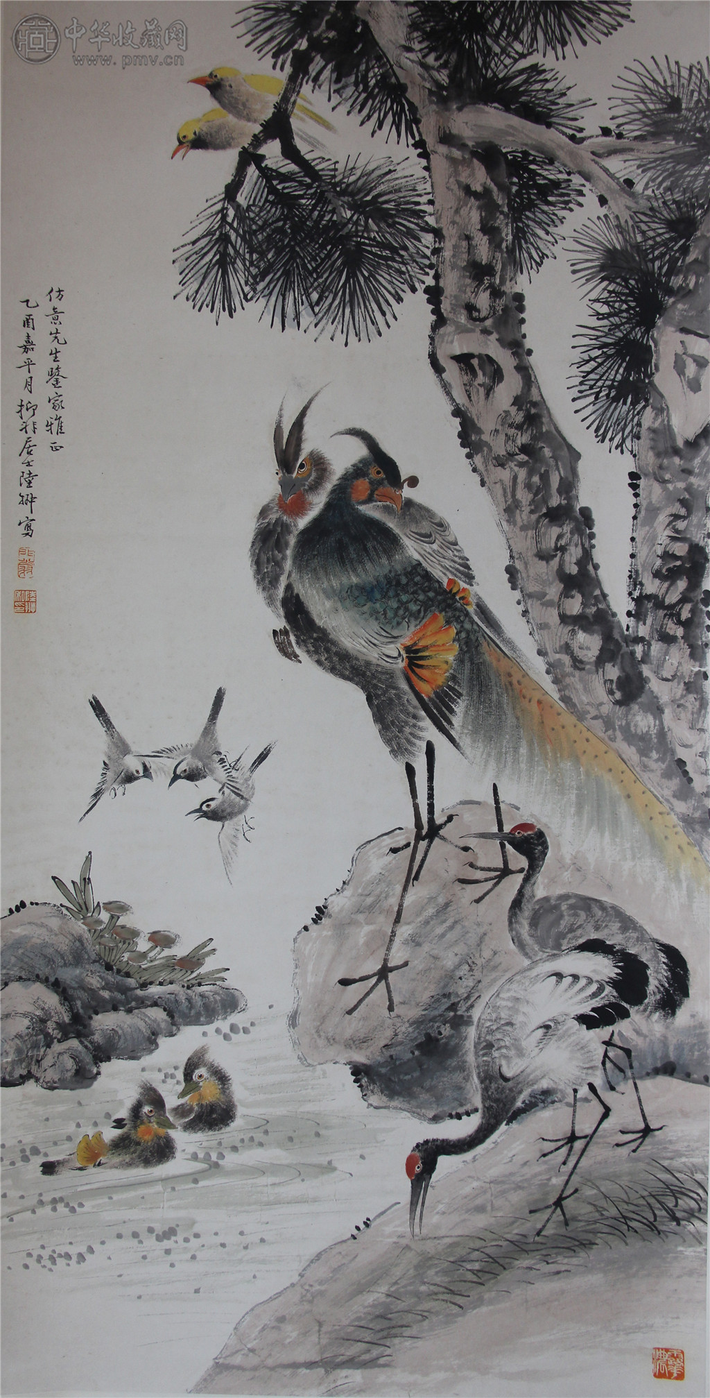 陆抑非 《工笔花鸟》 136x68cm