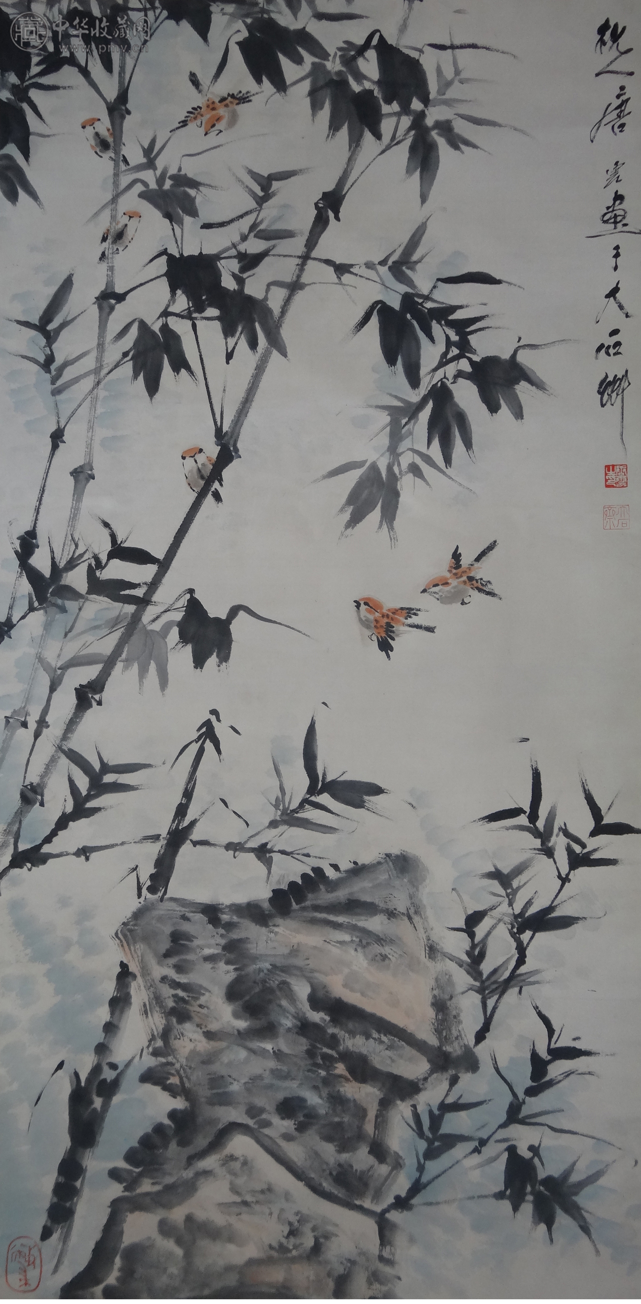 唐云 《竹雀图》 64X132CM