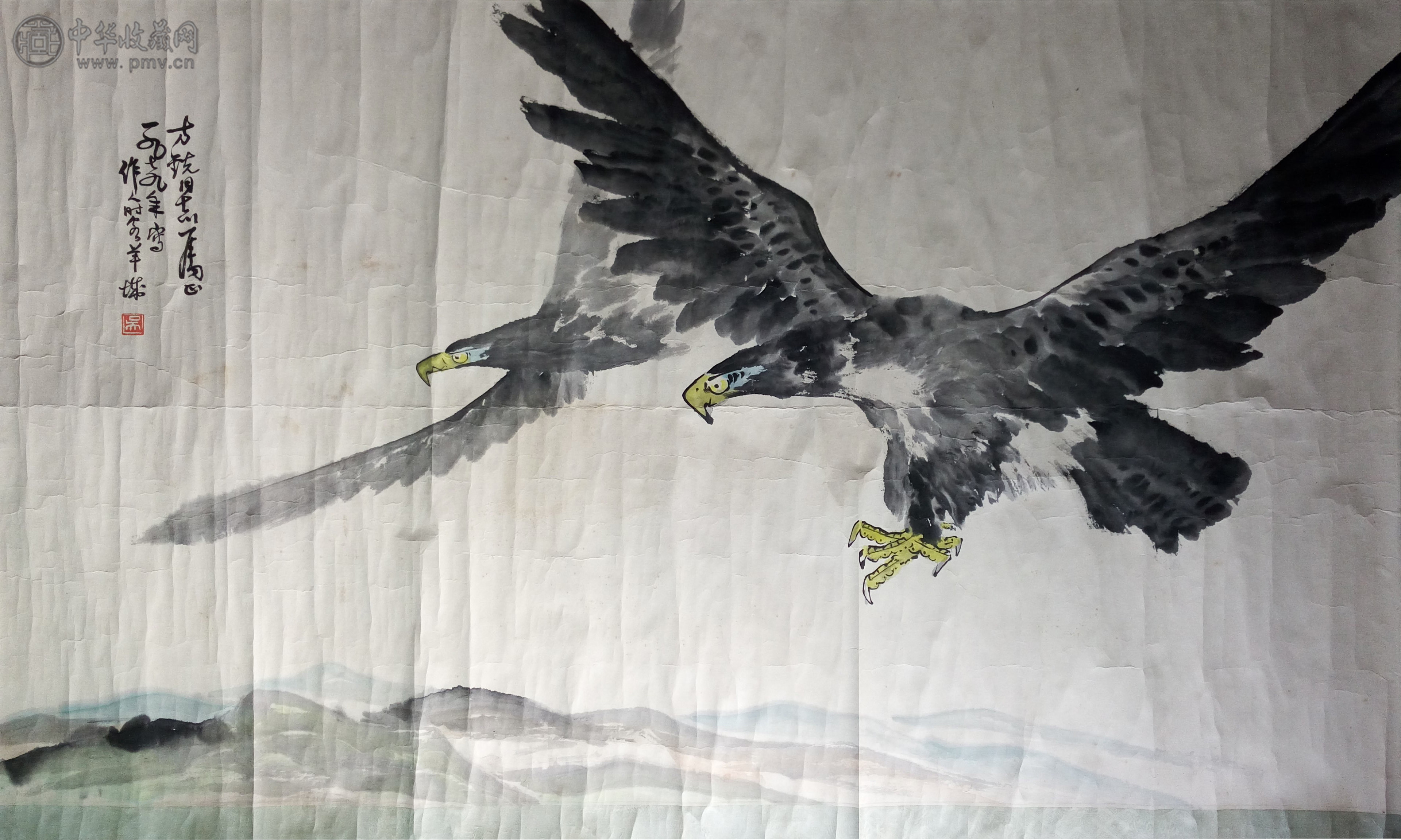 吴作人 《鹰击长空图》 179x98cm
