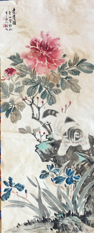 陈半丁、曹克家 《猫趣图》98x40cm