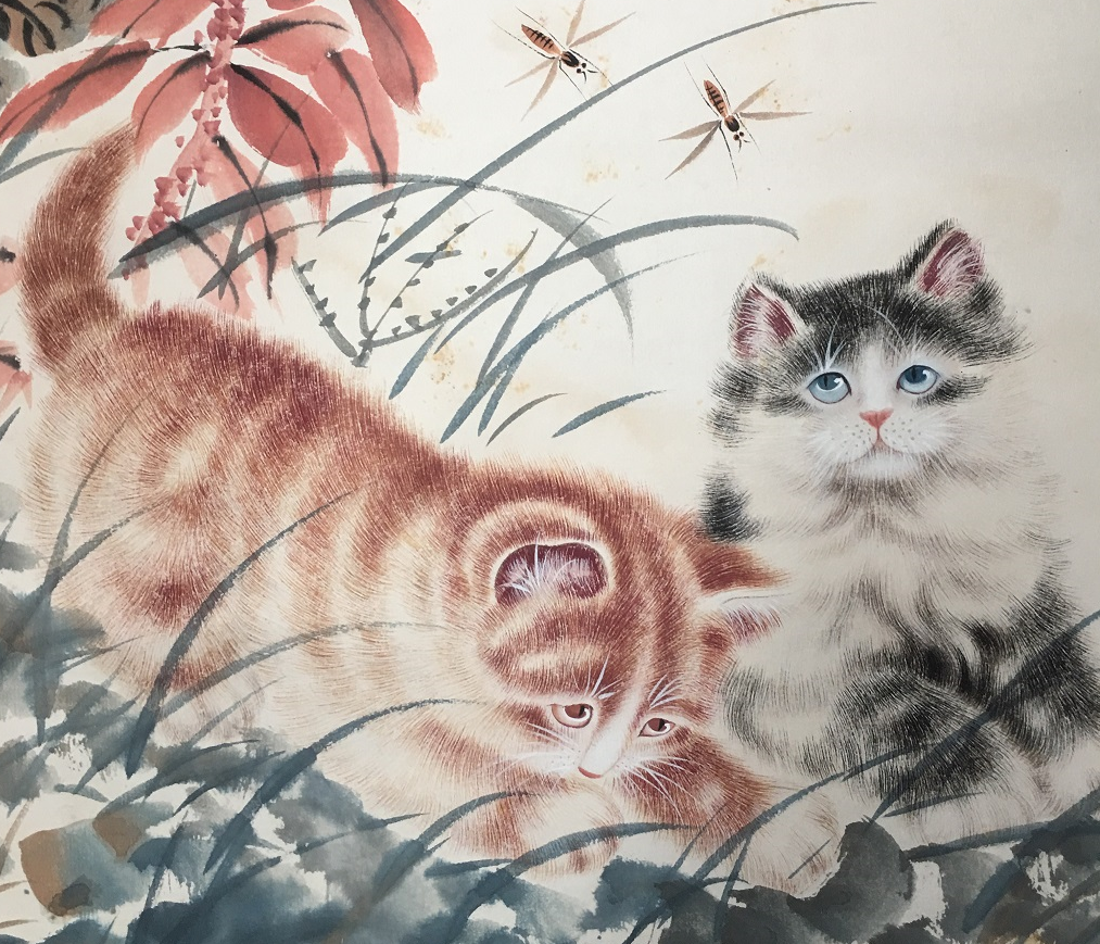 王雪涛 戏猫图 89x43.5cm