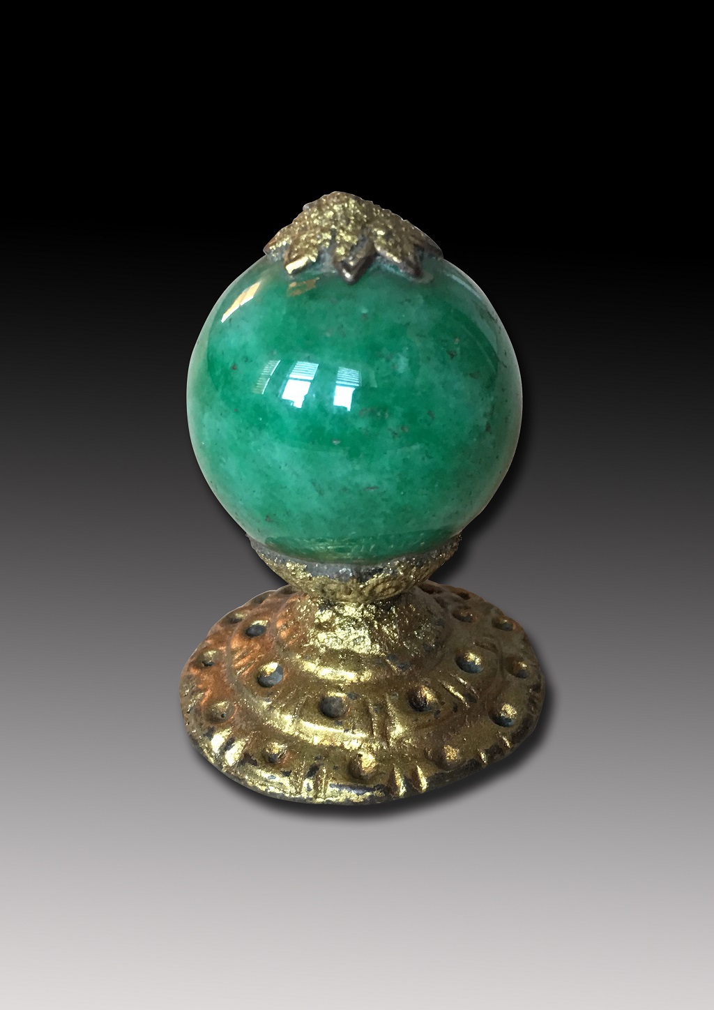 (清) 铜鎏金翡翠顶带花