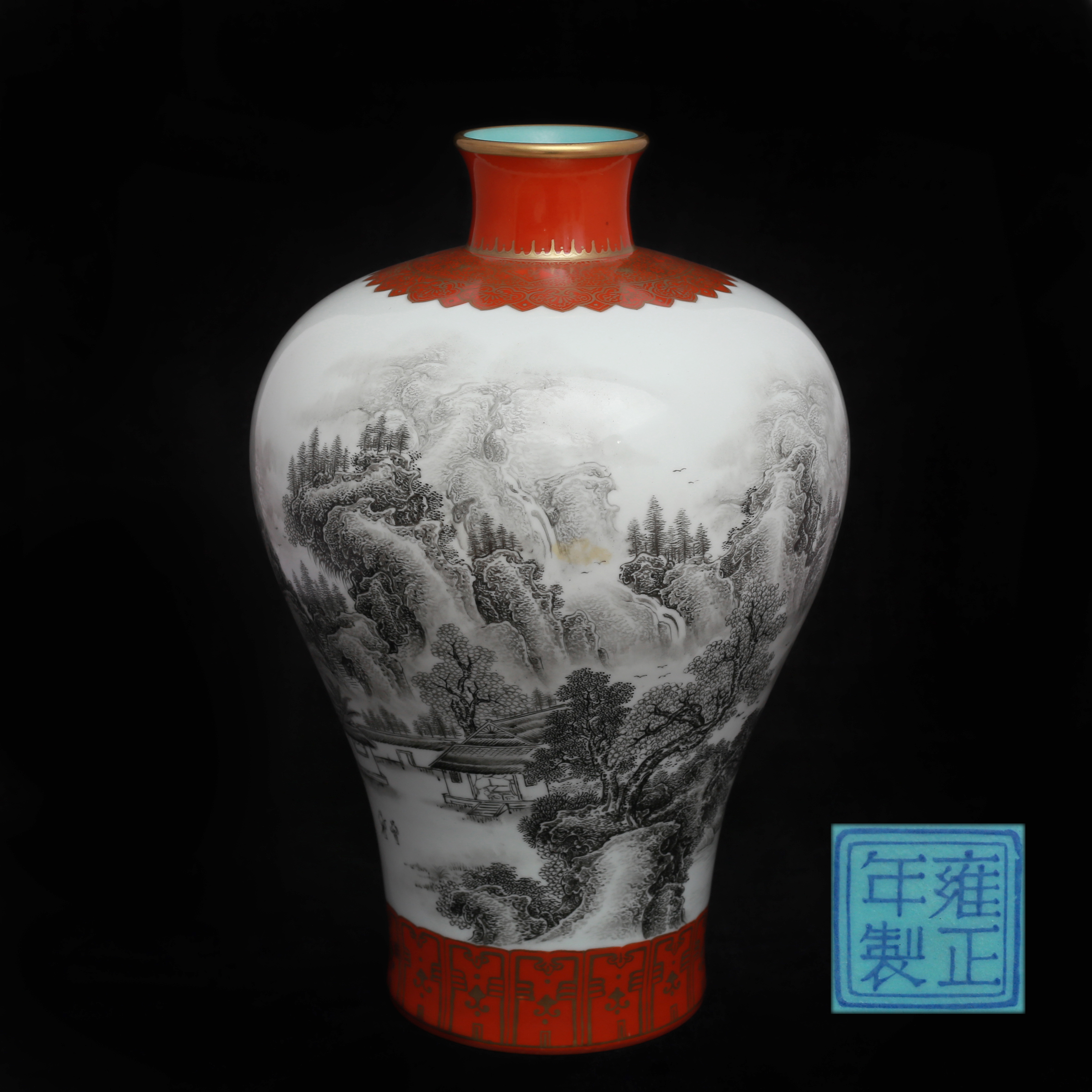 [863]大清雍正年制(款) 墨彩山水纹梅瓶