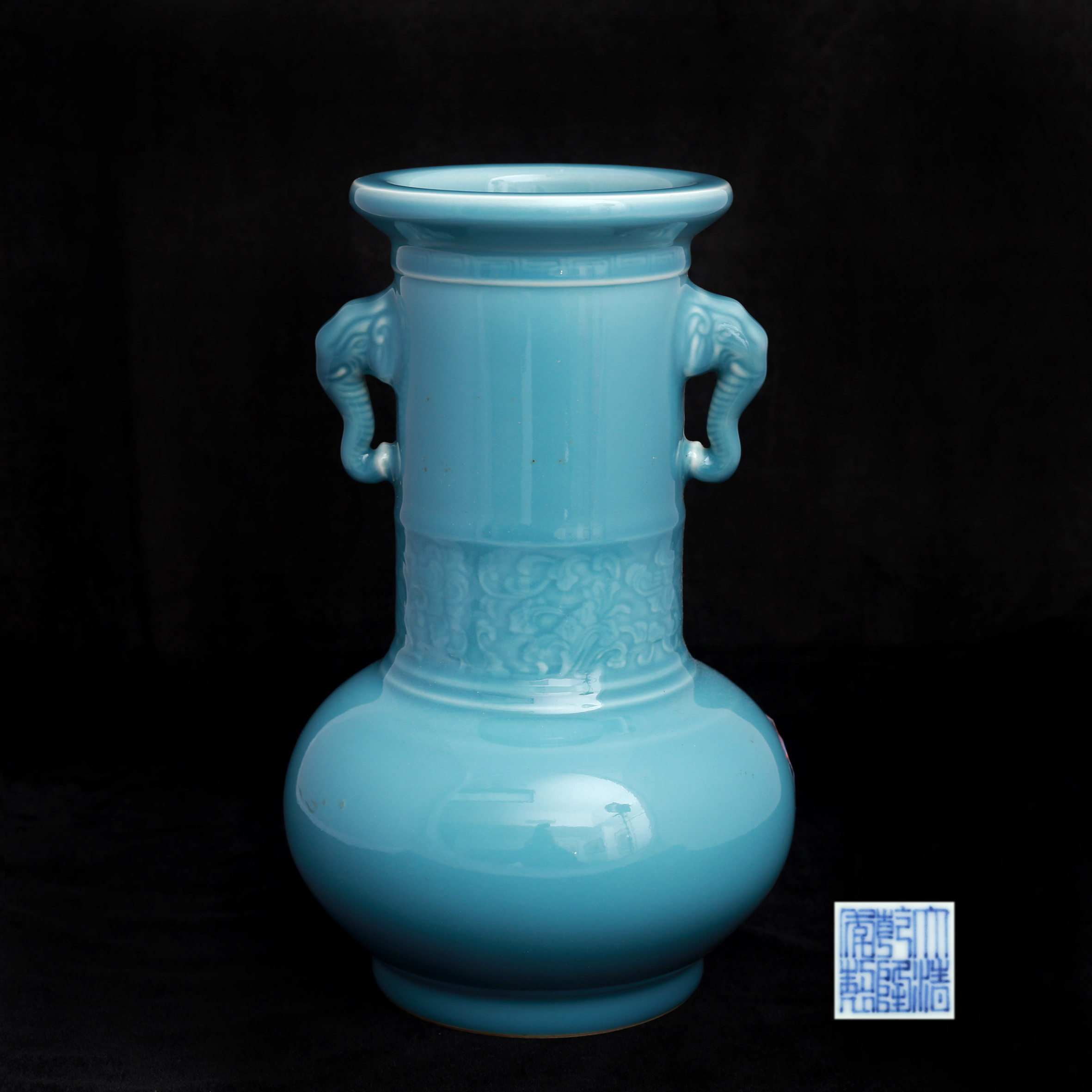 [864]大清乾隆年制(款)单色釉象耳尊