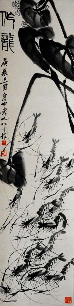 齐白石 落叶群虾