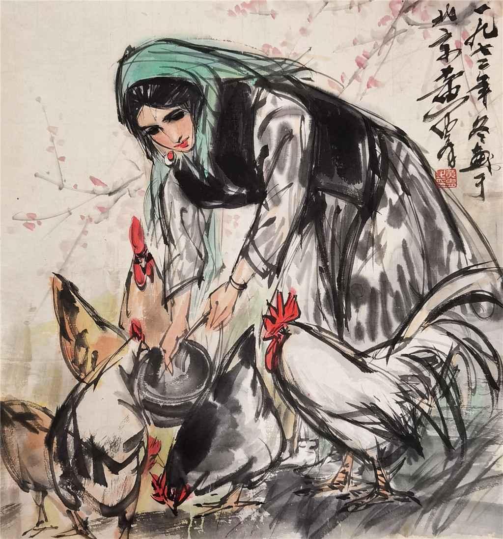 黄胄 喂鸡图