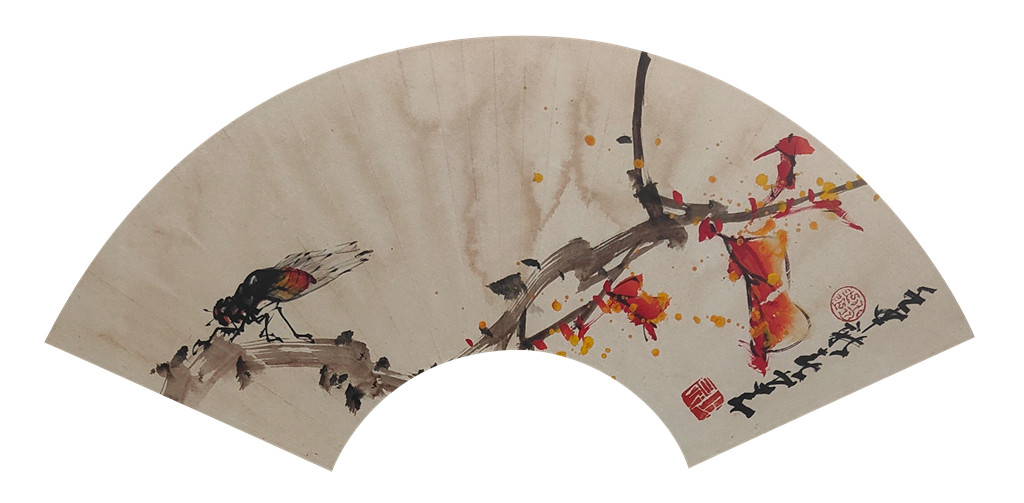 赵少昂 草虫扇面