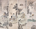 胡锡珪 人物四屏