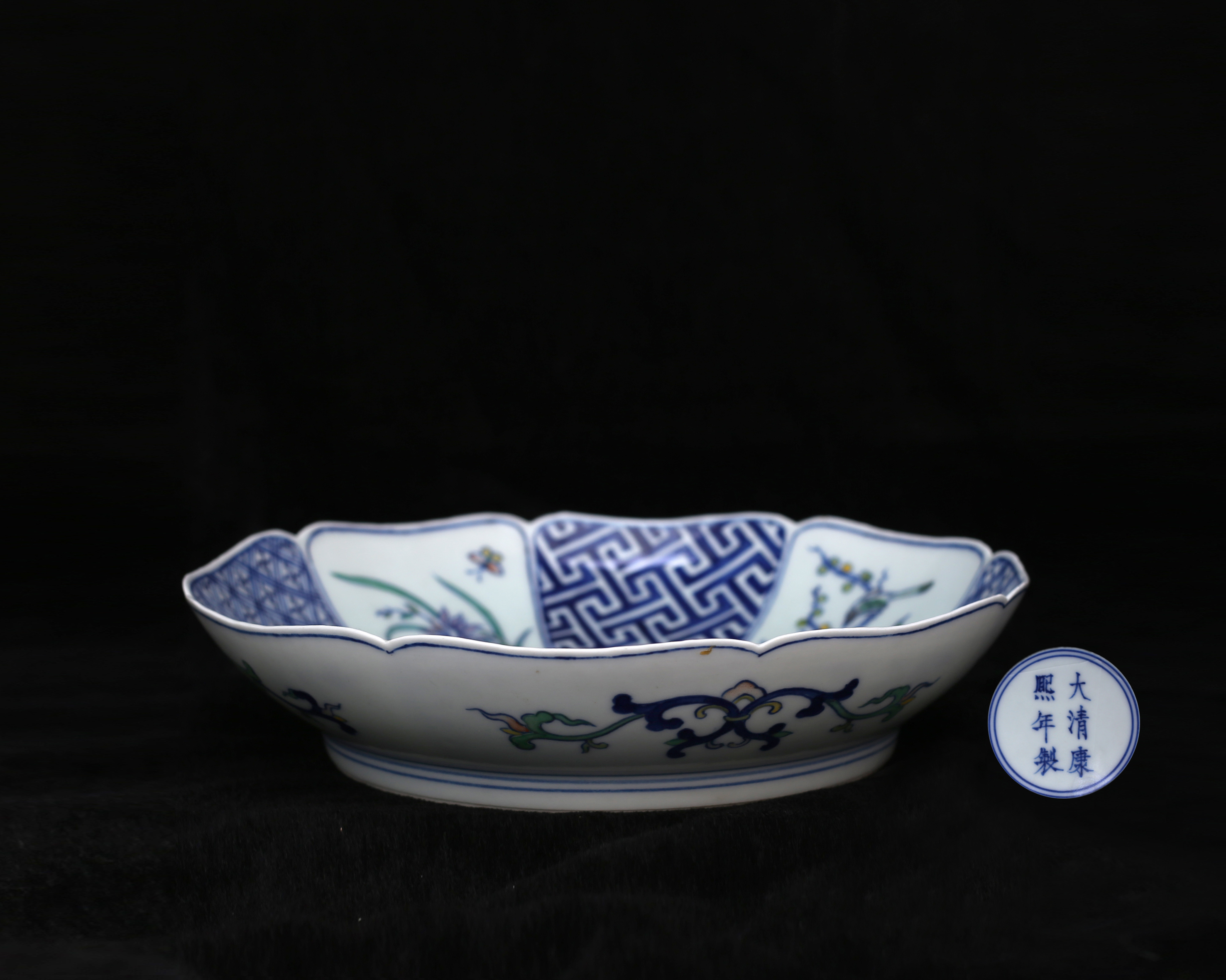 [469](大清康熙年制款)青花五彩葵花盘