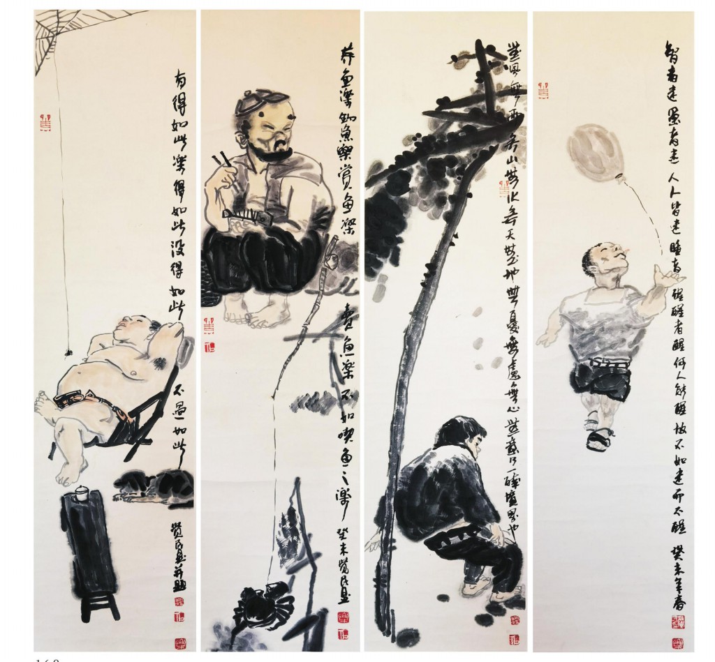 杜觉民 人物四屏