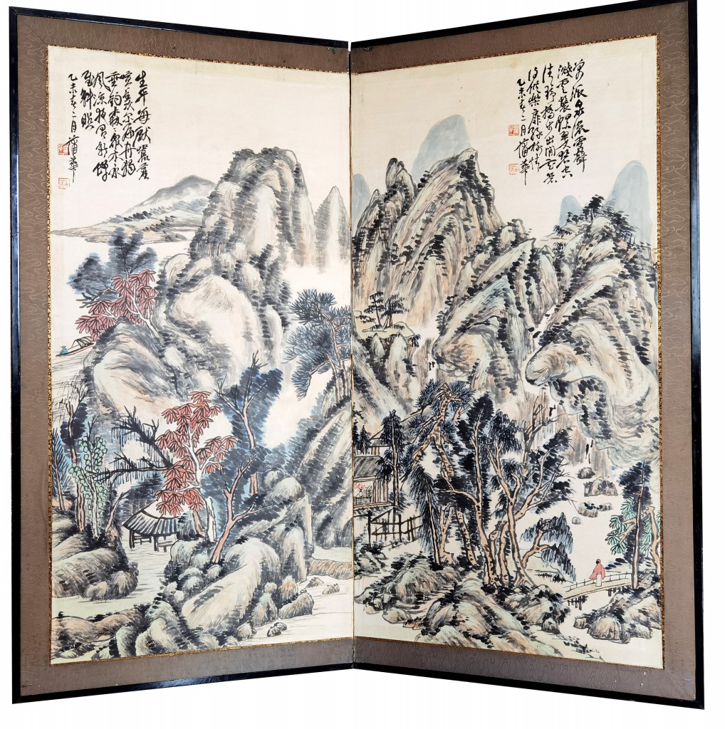 (清)蒲华 山水二屏