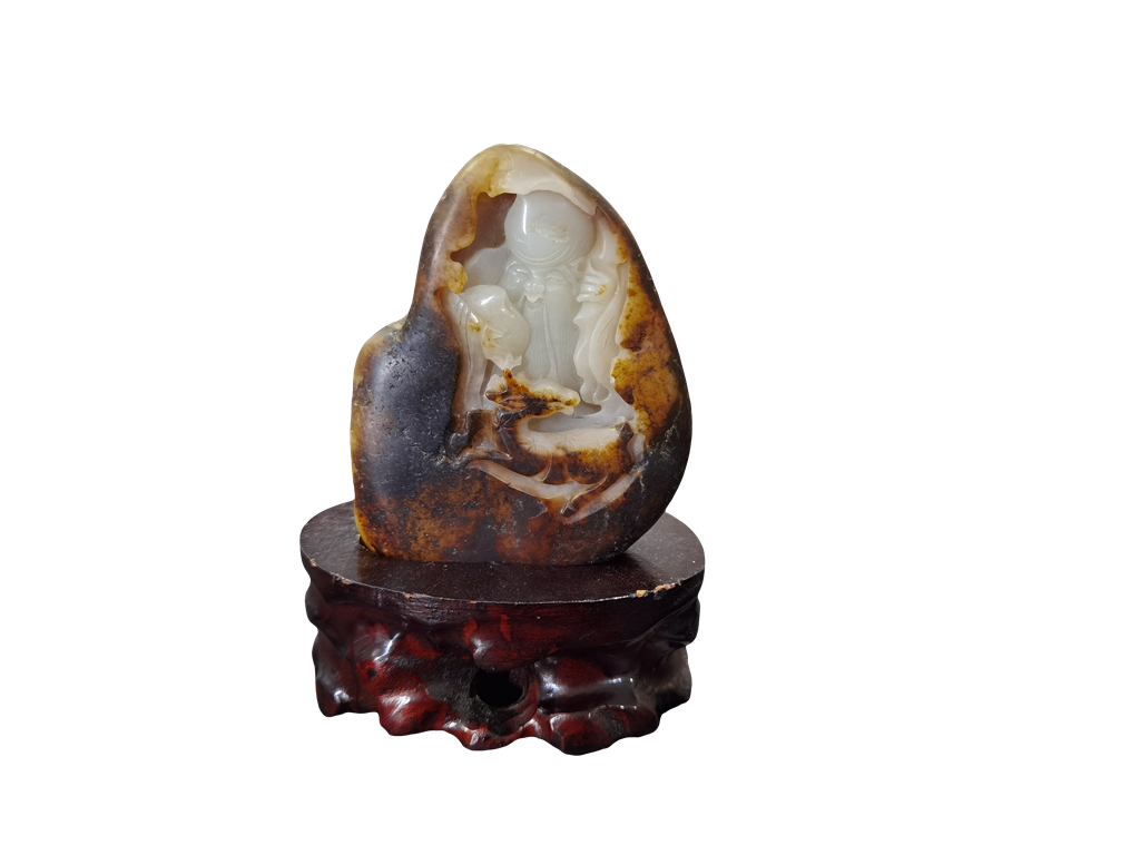 佚名 和田枣皮玉镂空雕刻寿星