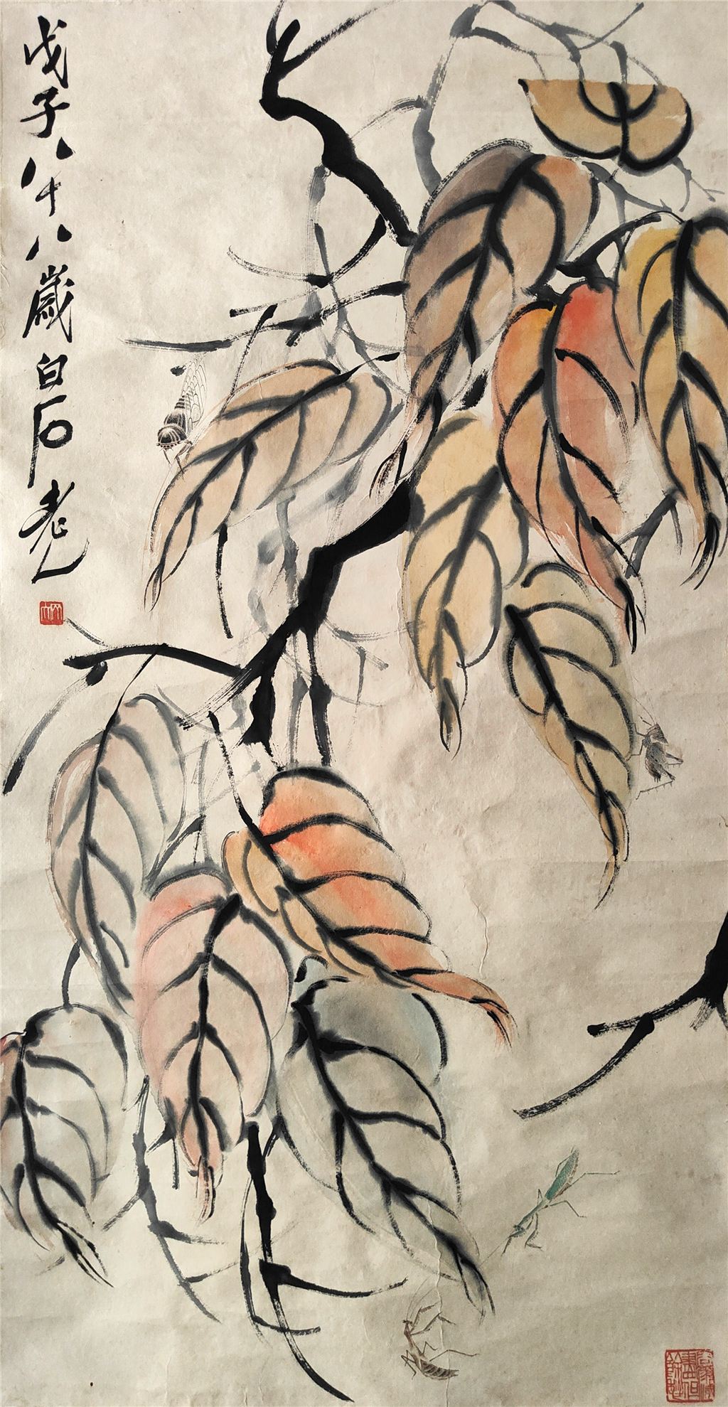 齐白石 贝叶草虫