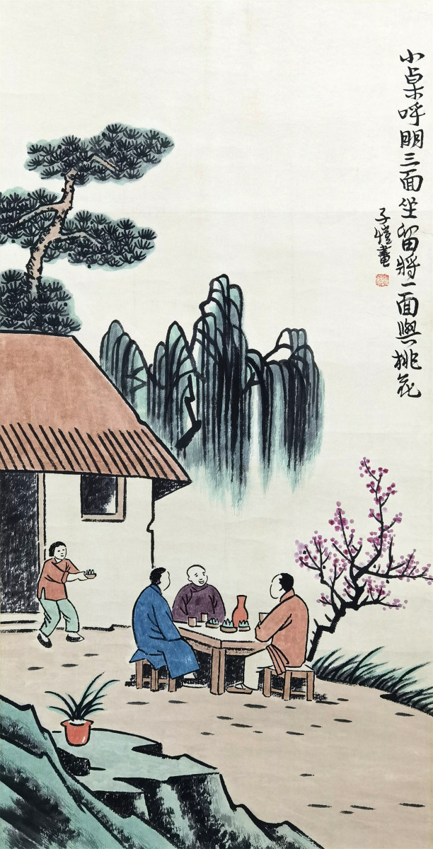 丰子恺(1898-1975),号缘缘堂,中国现代著名的书画家、文学家、翻译家、美术音乐教育理论家,被称之为“中国现代漫画鼻祖”。师从弘一法师,具有全面艺术修养的人物,造诣颇深,成就斐然,称得上真正的大师。中国美协常务理事、上海分会主席、上海文联副主席、上海中国画院首任院长、全国政协委员。