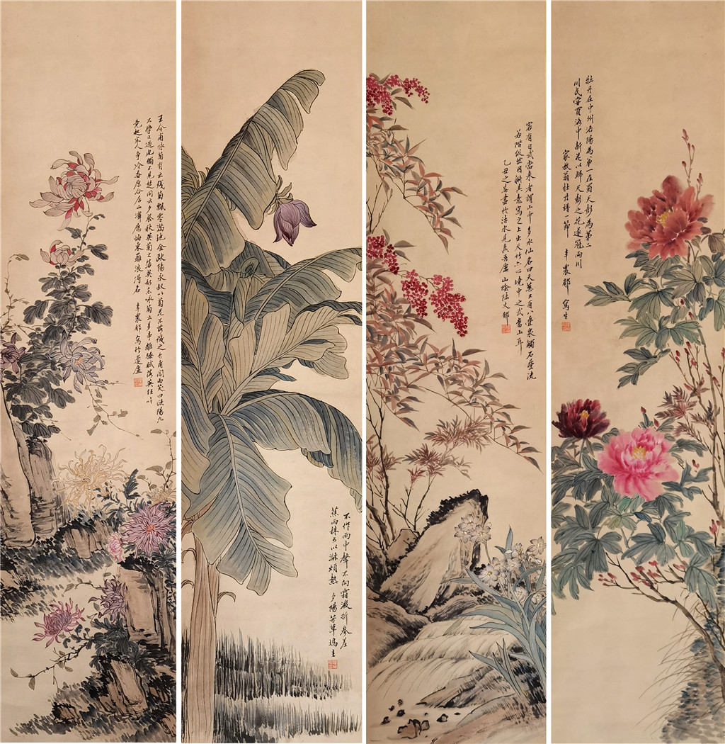 陆文郁 花鸟四屏