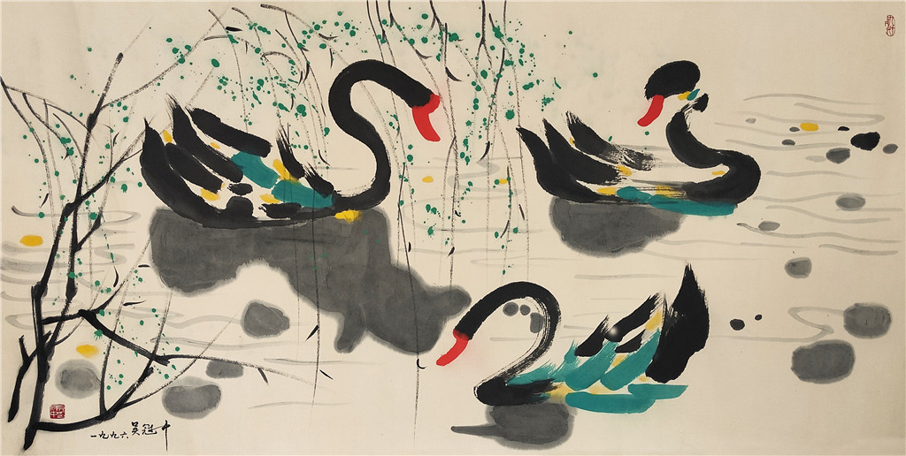 吴冠中 鹅戏图