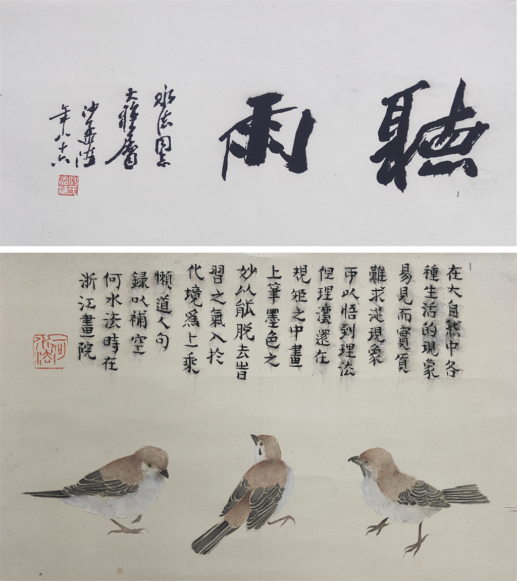 何水法 花鸟 沙孟海题
