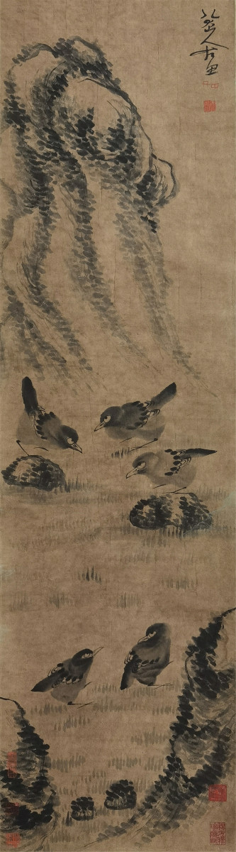 八大山人 鸟石图