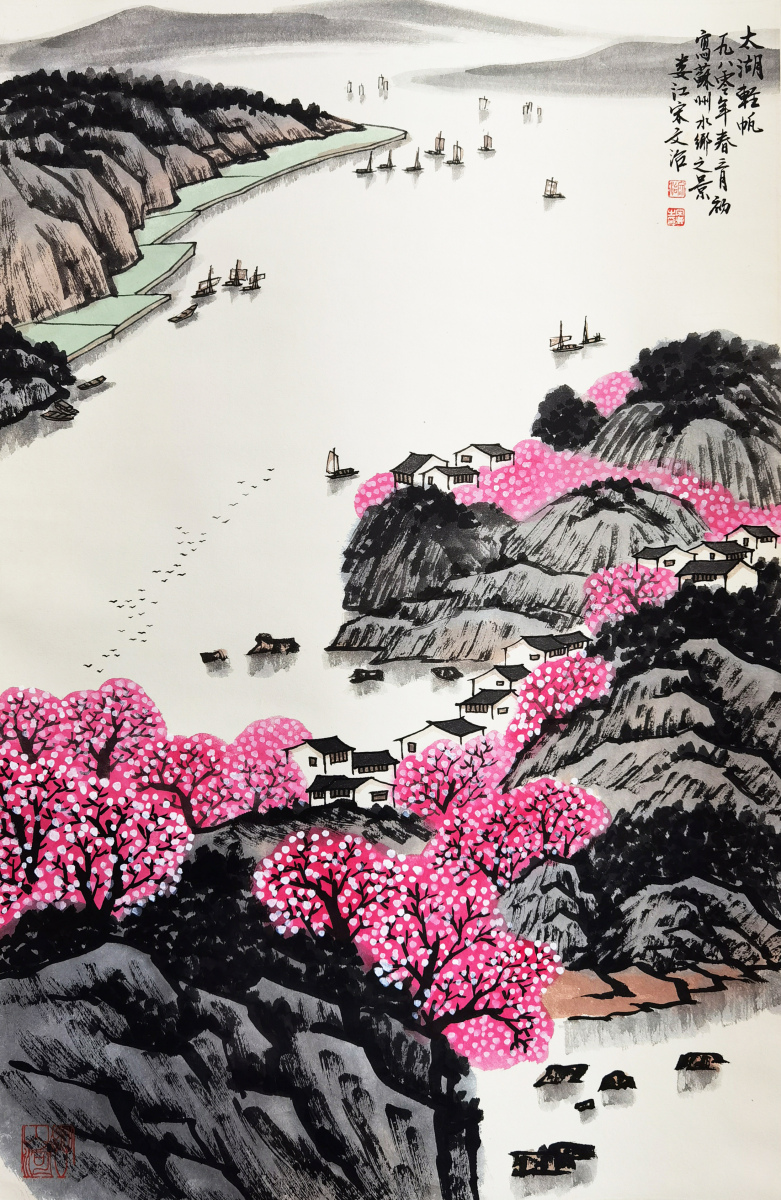 宋文治(1919-1999),江苏太仓人。新金陵画派的杰出代表人物,一代山水画大师,被誉为“当代山水画八家”之一,人送雅号“宋太湖”。”江苏省国画院副院长,中国美术家协会理事,中国美术家协会江苏分会副主席,南京大学教授,省政协常委。