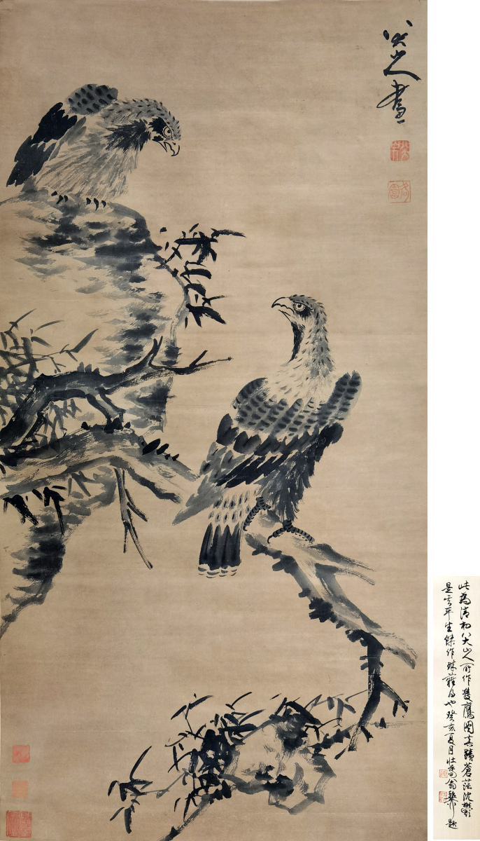 八大山人 双鹰图 注:鉴定大师谢稚柳先生鉴赏题跋